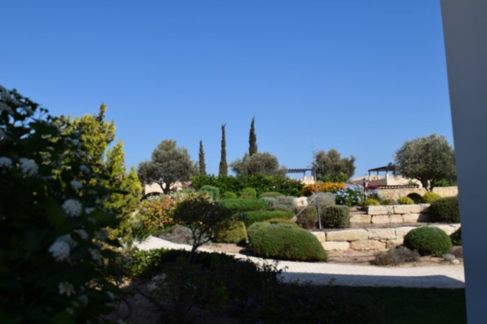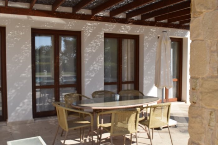 Outside the villa to the front of the property is a lovely garden with many shrubs, plants and native Cypriot flowers.To the side you is the barbecue area and to the rear is a large pergola covering the pretty patio area which overlooks the swimming pool and gardens. There is also garden dining furniture, sun loungers and parasols.