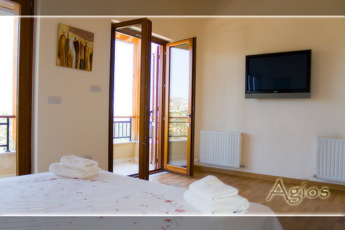 The top most level of the villa is where one can enjoy truly panoramic views. Paphos itself visible in the distance, the mountains, the Aphrodite Hills ravine and of course, the Mediterranean Sea all in view from this balcony.